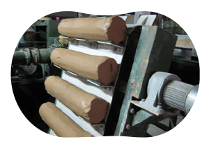 天草諸島の下島で採掘される陶石を砕いて粉末にし、徹底した品質管理のもとで、成形しやすく、かつ焼き縮みの少ない良質の粘土を製造します。これが焼き上がりが白く透明感のある美しい焼き物のもとになります。