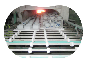 | 昭和55年 | 陶土・生地作り・絵付け・焼成の一貫生産体制を確立すべく本焼用トンネルキルン、全自動成形機、パッド印刷機など多数の製造機器の導入を開始。 |